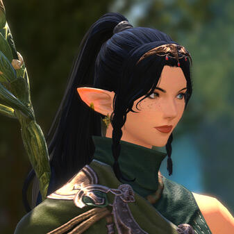 She is 5'2"Her guardian is Nophica, the Matron. However she feels more closely connected to Menphina, the Lover, due to her Keeper cultural upbringing.She has numerous canon hairstyles including: Form and Function, Scion Special Issue 1, and Early to Rise.Her clothes are typically color-coded for her jobs. Rolanberry Red for BLM and Dragoon Blue for AST.